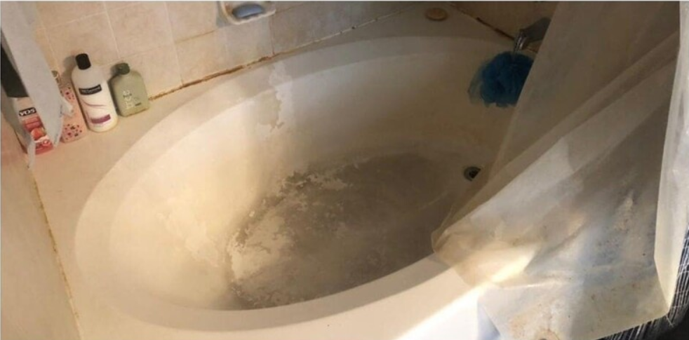 - Disinfect shower/tub interior including walls, floor, drain, and grout lines using eco-friendly mold & mildew remover.