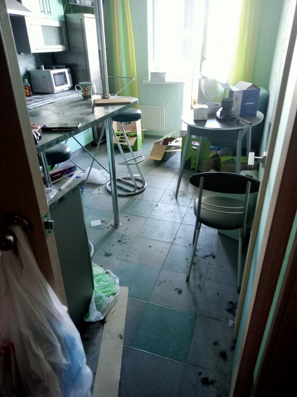 - Mop floor with disinfectant solution